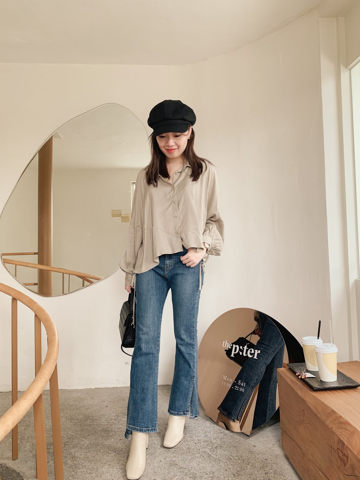 喇叭牛仔褲褲管的側邊還有小巧思做開岔