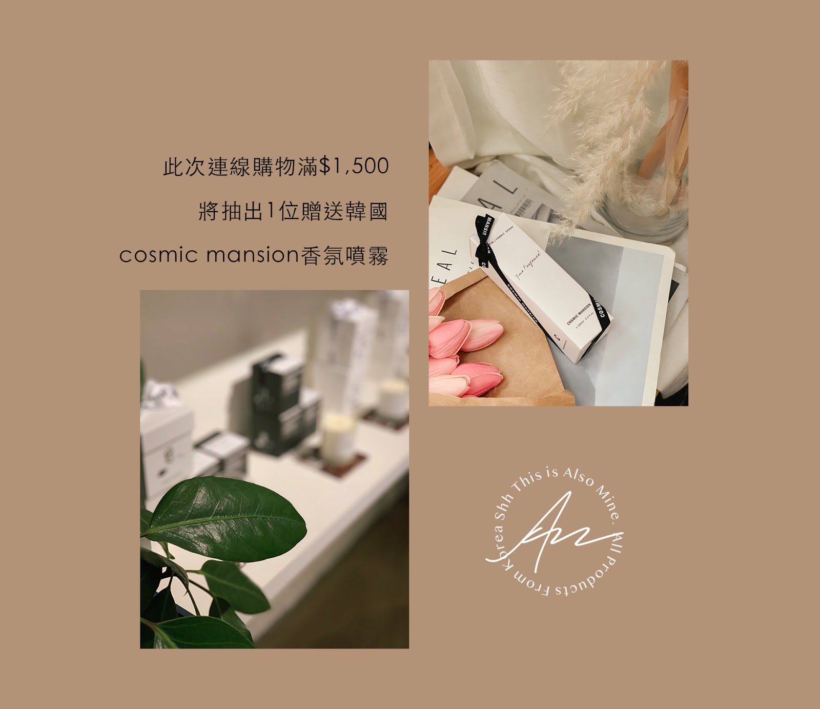 第一波購物滿$3,500的客人還可以參加抽獎,要送大家韓國最有名的Cosmic Mansion香氛噴霧No.11號