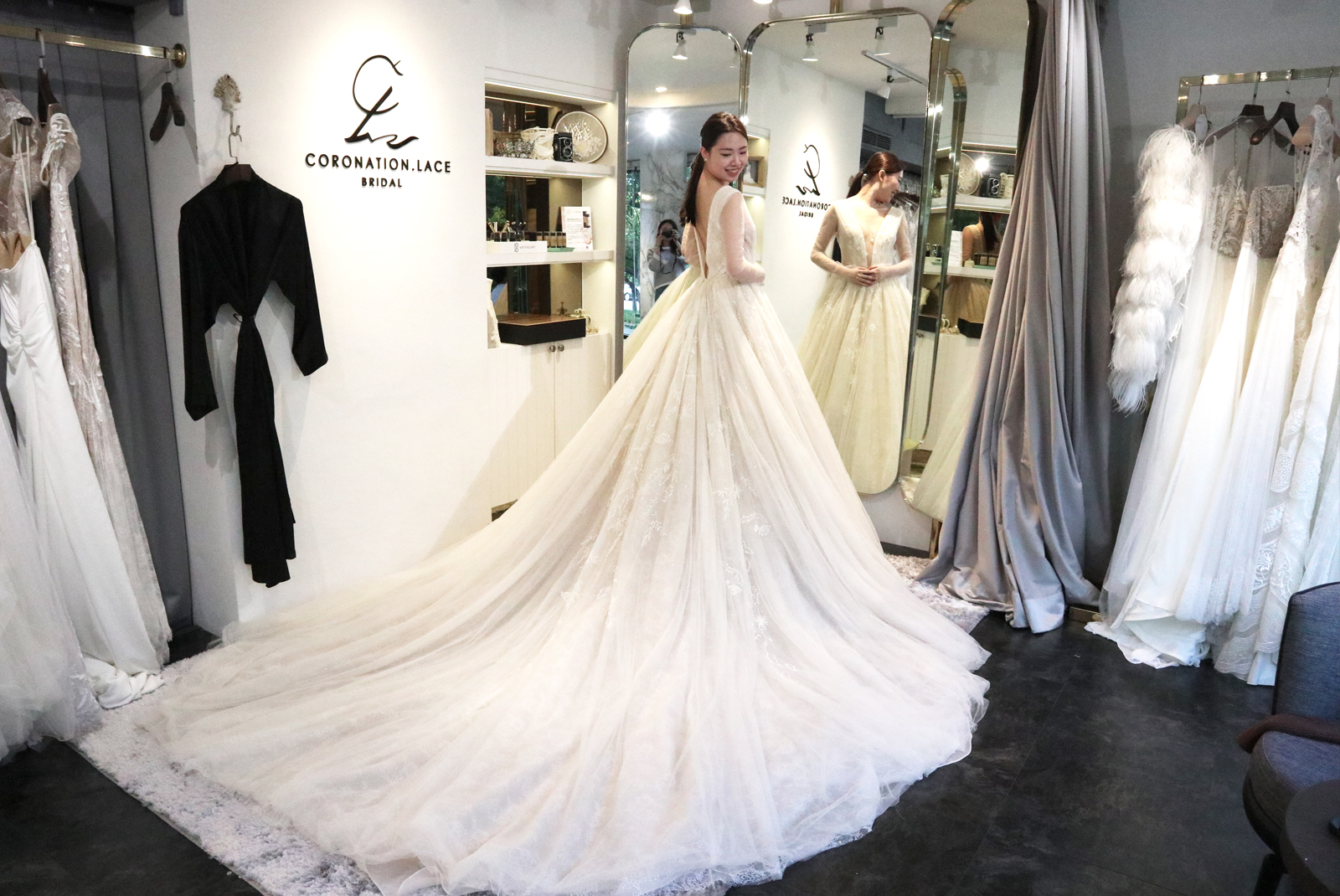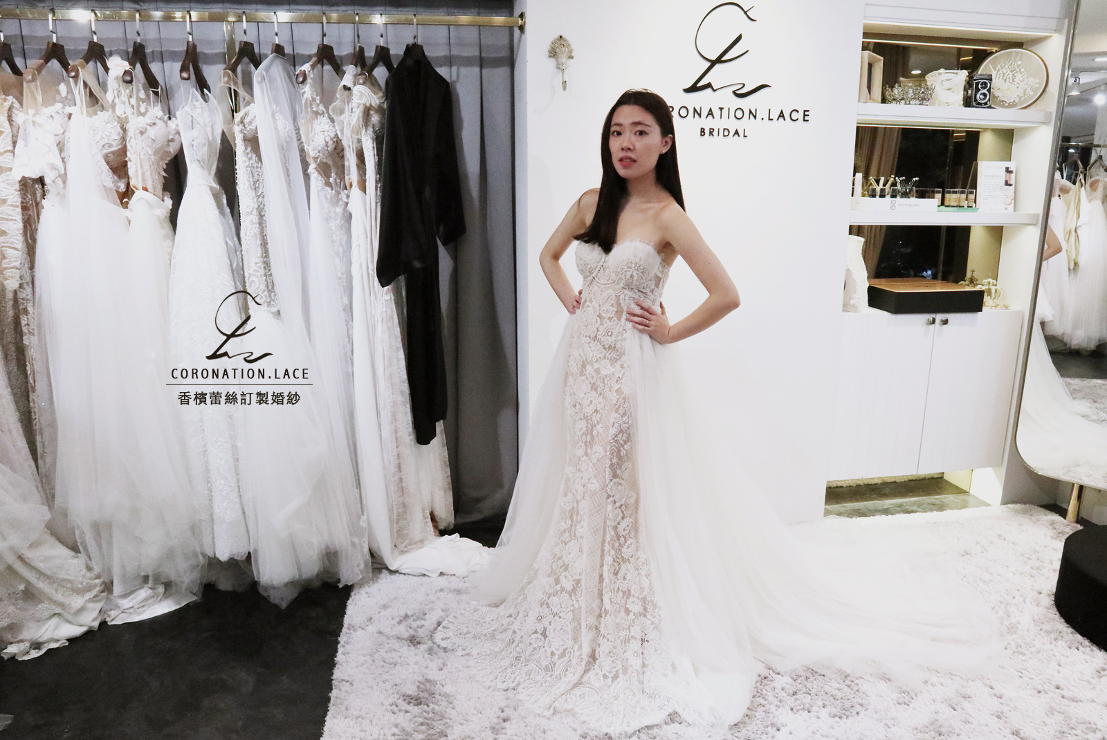 香檳蕾絲引進許多國家的高訂服,各種不同的款式都有,他們會深入了解每個品牌、每件禮服背後的理念以及故事